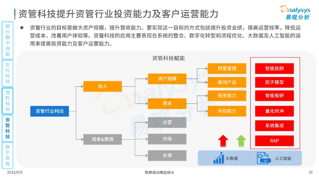 以大数据、人工智能、物联网、区块链等为代表的数字科技驱动金融产业数字化方兴未艾,数字科技使得金融和科技两个领域产生更紧密的场景联结,使得数字科技服务可以更早、更有效地介入到金融产业增长模型中去,更早的融入到企业和个人的资产生成过程,并从根本上提升金融机构资产透视能力和资产定价能力,帮助金融机构和实体部门降低成本、提升效率、增强用户体验及优化业务模式。